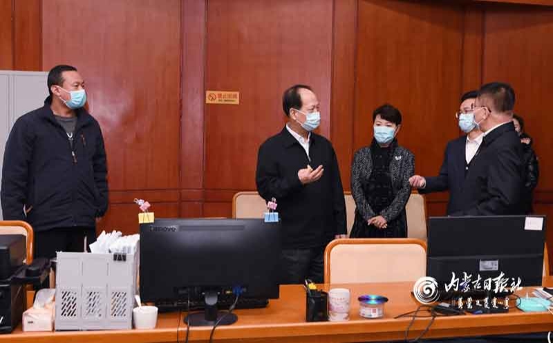 2月17日,自治區(qū)黨委書記、人大常委會主任石泰峰,自治區(qū)黨委副書記、自治區(qū)主席王莉霞來到呼和浩特市疫情防控指揮部調(diào)研督導(dǎo)疫情防控工作。內(nèi)蒙古日報(bào)社融媒體記者 袁永紅 攝
