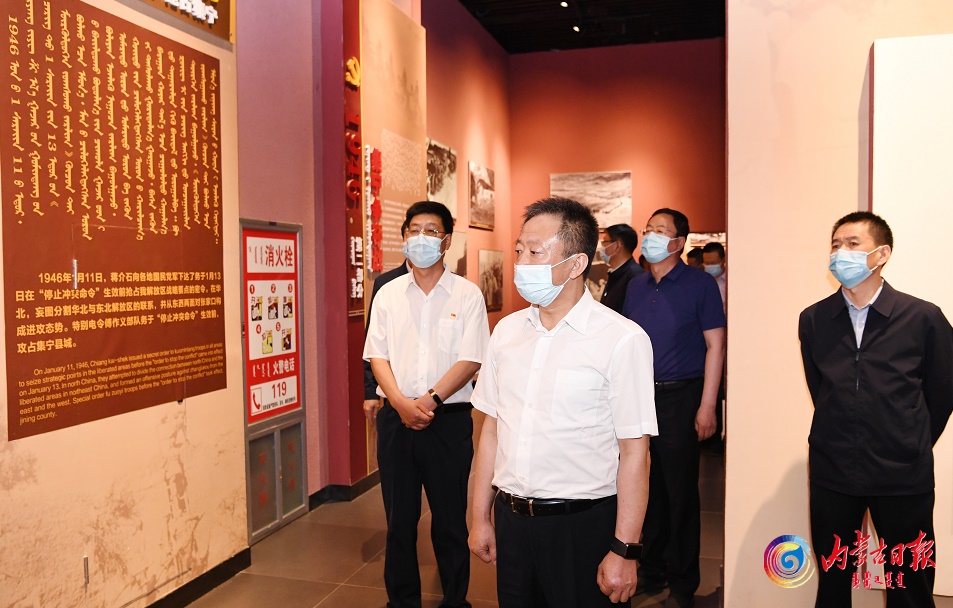 孫紹騁參觀集寧戰(zhàn)役紀(jì)念館,認(rèn)真聽(tīng)取情況介紹。內(nèi)蒙古日?qǐng)?bào)社融媒體記者袁永紅攝