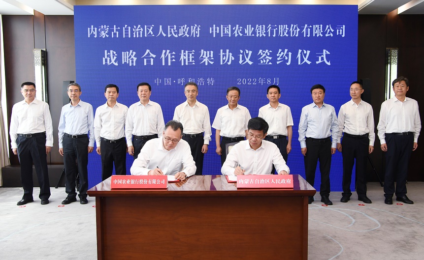 8月2日,自治區(qū)政府與中國農(nóng)業(yè)銀行在呼和浩特簽署戰(zhàn)略合作框架協(xié)議。自治區(qū)黨委書記孫紹騁,中國農(nóng)業(yè)銀行黨委書記、董事長谷澍見證簽約。