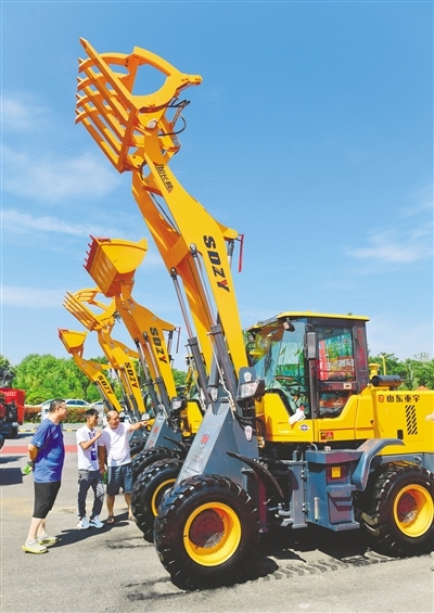 8月13日,在第三十屆內(nèi)蒙古國際農(nóng)業(yè)博覽會上,工作人員向觀眾介紹農(nóng)機(jī)產(chǎn)品。記者 王磊 攝