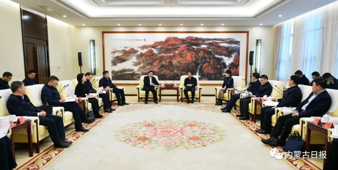 2月18日,自治區(qū)黨委書記孫紹騁,自治區(qū)黨委副書記、自治區(qū)主席王莉霞在呼和浩特會見中國東方電氣集團(tuán)有限公司黨組書記、董事長俞培根一行。內(nèi)蒙古日報社融媒體記者 馬建荃攝