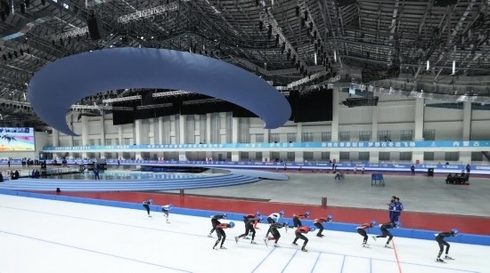 內(nèi)蒙古冰上運(yùn)動(dòng)訓(xùn)練中心是組團(tuán)式場館群,包括速滑館、短道速滑館、冰球冰壺館等,作為“十四冬”的主場館,這里承擔(dān)著開幕式和全部冰上項(xiàng)目比賽任務(wù)。