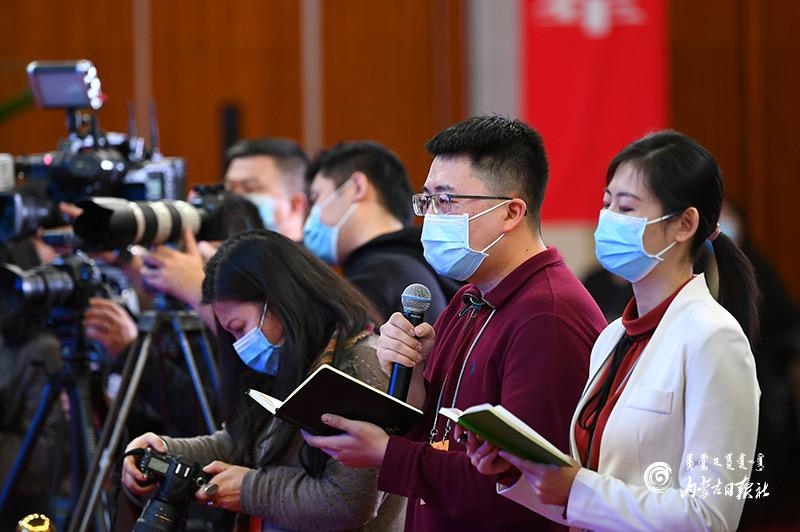 人大代表云霖瓊答記者問。內(nèi)蒙古日報記者 金泉 攝