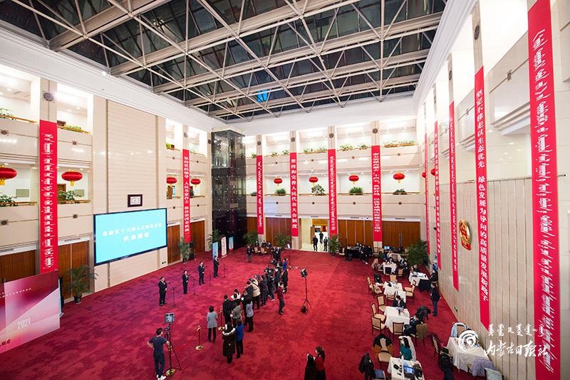 1月27日晚,自治區(qū)十三屆人大四次會議“代表通道”集中采訪活動在內(nèi)蒙古人民會堂玻璃廳舉行,8位人大代表分兩組“亮相”。這是自治區(qū)人大首次開通“代表通道”。內(nèi)蒙古日報記者 金泉 攝