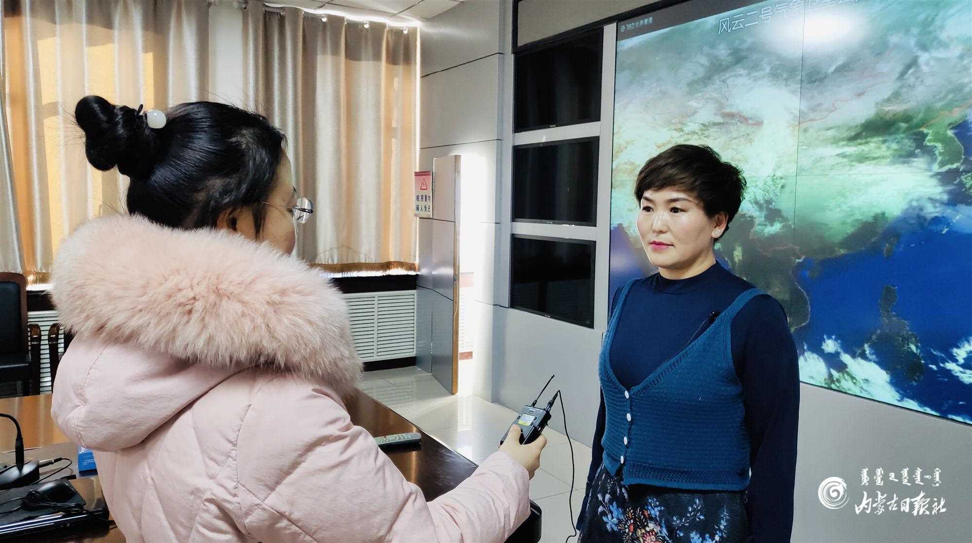 達(dá)茂旗氣象局局長敖登其木格接受采訪。