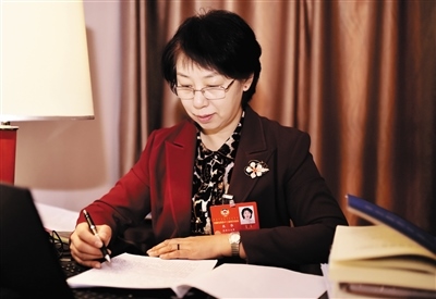 1月26日,政協(xié)委員朱華在駐地修改關(guān)于完善衛(wèi)生應(yīng)急體系,提升旗縣醫(yī)療機構(gòu)急救應(yīng)急能力的提案。記者 馬建荃 攝