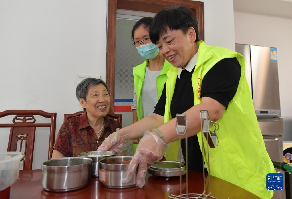 在江西省南昌市東湖區(qū)彭家橋街道文教路北社區(qū),“幸福食堂”的義工在給社區(qū)內(nèi)出行困難的老人提供送餐服務(wù)(2020年7月29日攝)。從2018年12月起,南昌市東湖區(qū)彭家橋街道在社區(qū)打造以黨建引領(lǐng)、社區(qū)主導(dǎo)、愛心企業(yè)贊助的“幸福食堂”,專門為社區(qū)獨(dú)居、孤寡及生活困難的老年人提供營養(yǎng)餐,以此進(jìn)一步完善社區(qū)居家互助養(yǎng)老服務(wù)。新華社記者 彭昭之 攝