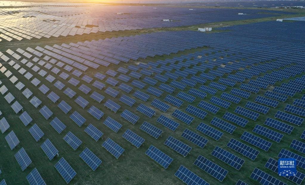 這是青海省海南藏族自治州共和縣境內(nèi)的大唐青海公司新能源分公司光伏電站一角(2020年7月7日攝,無人機照片)。新華社記者 張宏祥 攝