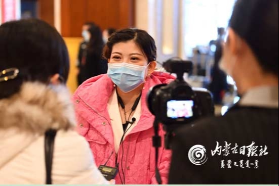 人大代表接受內(nèi)蒙古日報(bào)社記者采訪。