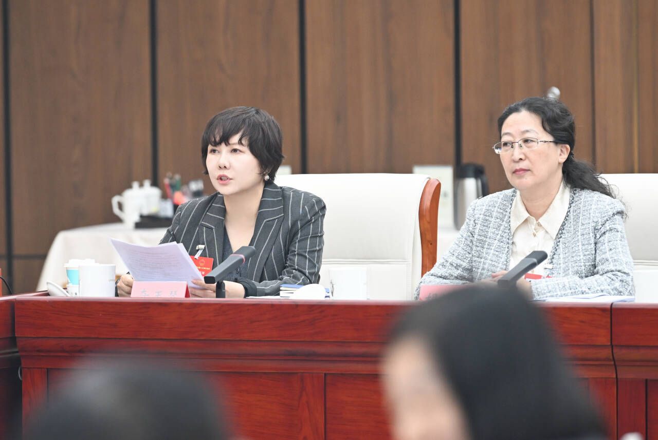 3月11日,全國人大代表奇玉琴(左)建議,強化知識產(chǎn)權(quán)協(xié)同保護,建立常態(tài)化聯(lián)絡(luò)機制,對重大知識產(chǎn)權(quán)案件聯(lián)合研判、快速維權(quán),形成行政和司法高效保護合力。記者 孟和朝魯 攝