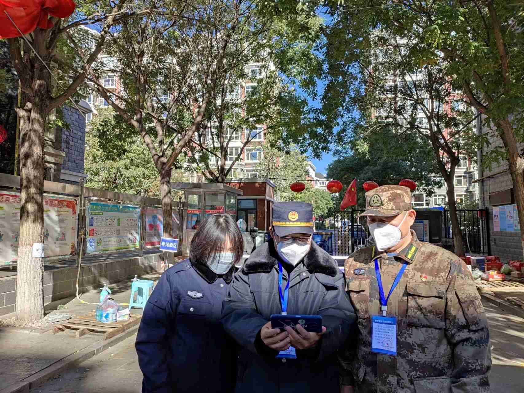 呼和浩特市大學東路街道工作人員線上收看黨的二十大開幕會。黃麗杰攝