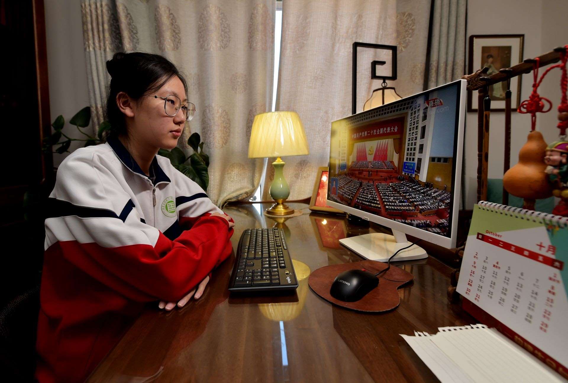 內蒙古師范大學附屬第二中學的學生蒙納收看黨的二十大開幕會。本報記者馬建荃攝