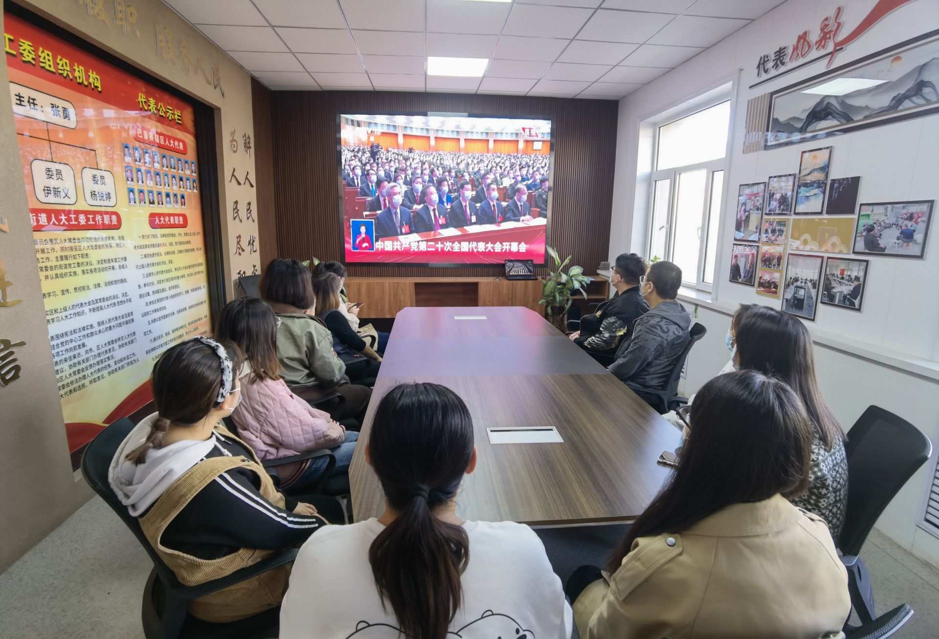 伊利集團員工收看黨的二十大開幕會。王佳攝