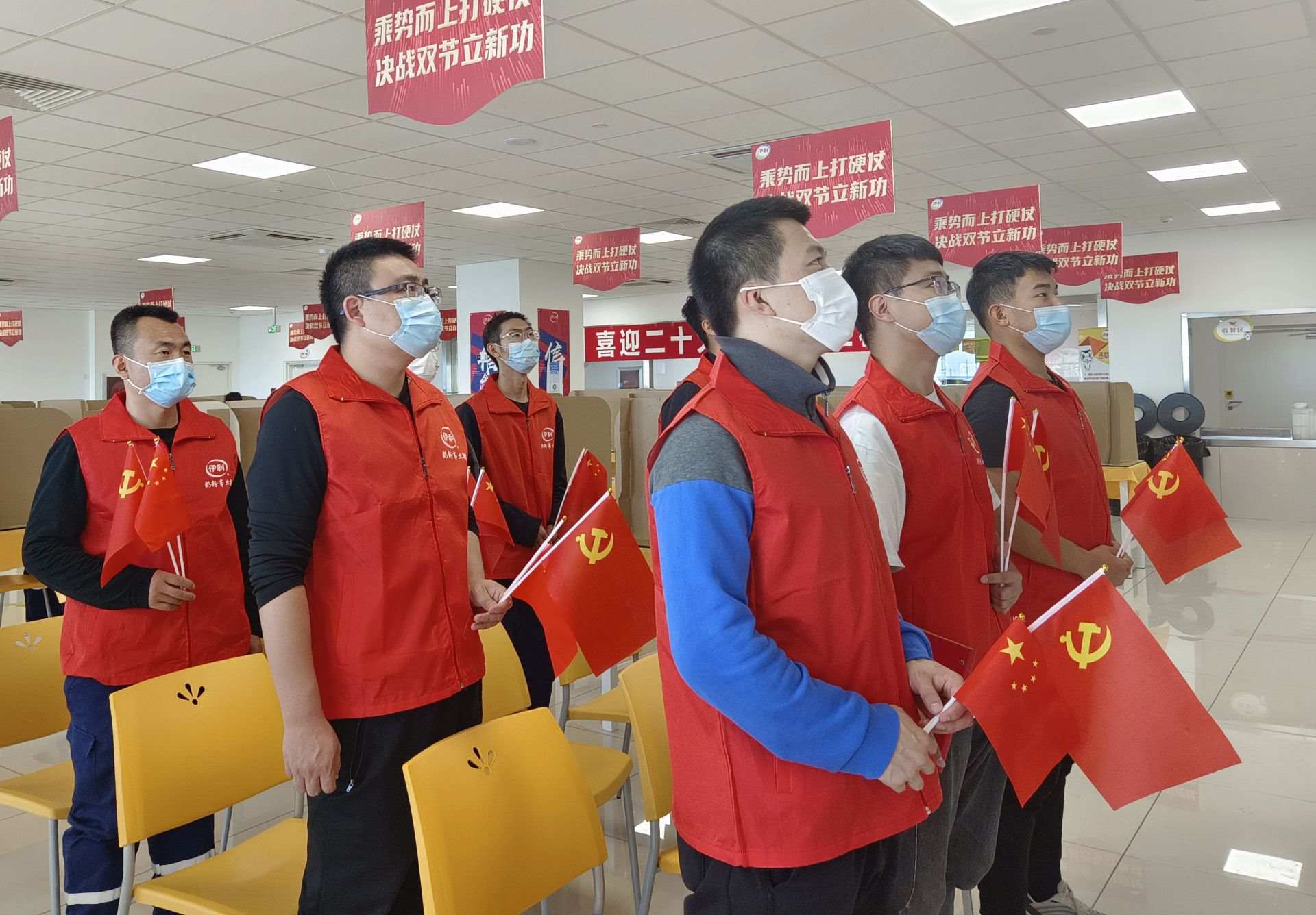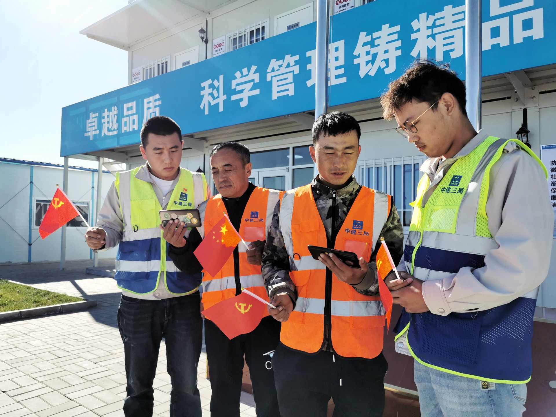 中建三局呼和浩特建設項目施工人員收看黨的二十大開幕會。曹楨攝