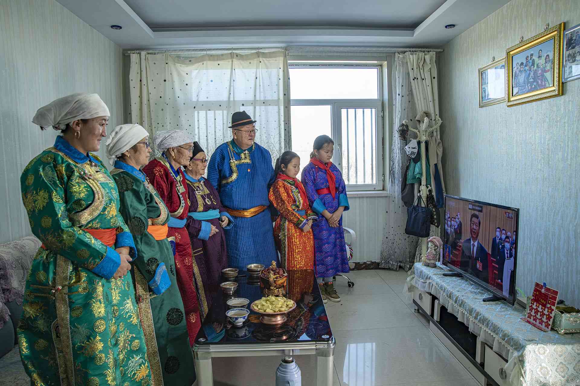 烏額爾很巴圖、斯琴格日樂是共產黨員,當日他們與家人在錫林郭勒盟東烏珠穆沁旗烏里雅斯太鎮(zhèn)的家中收看黨的二十大開幕會。白嘎利攝