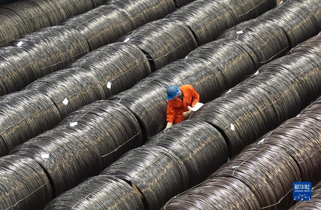 2017年5月15日,東北特鋼集團(tuán)工作人員在核對(duì)入庫的合金鋼大盤重線材產(chǎn)品標(biāo)識(shí)。新華社發(fā)(劉德斌 攝)