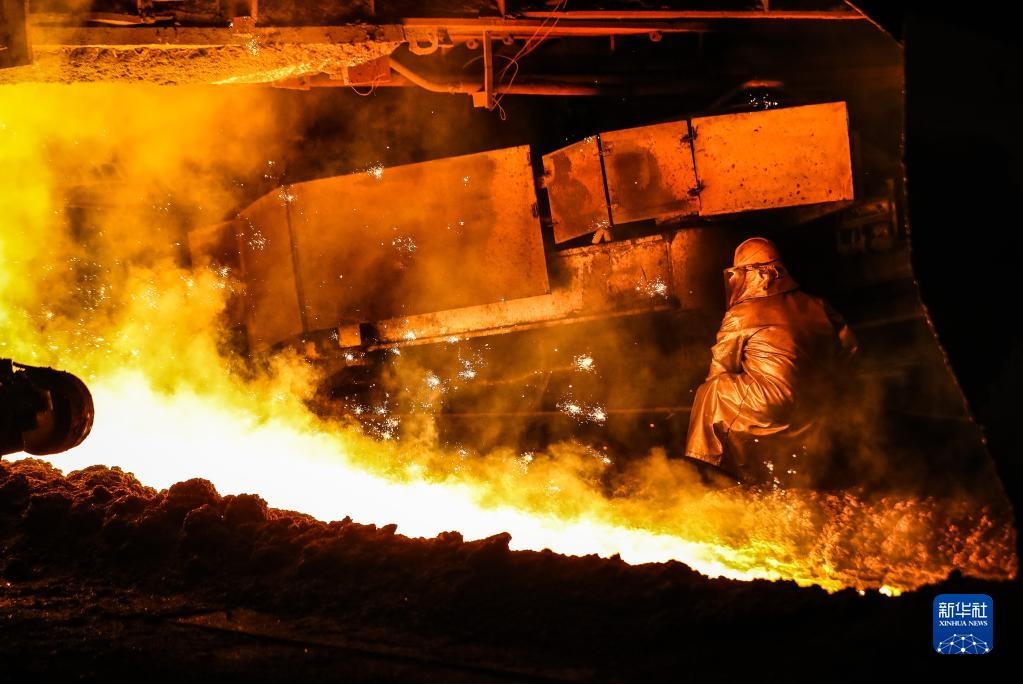 2021年7月1日,工人在鞍鋼股份煉鐵總廠新四號(hào)高爐進(jìn)行生產(chǎn)作業(yè)。新華社記者 潘昱龍 攝