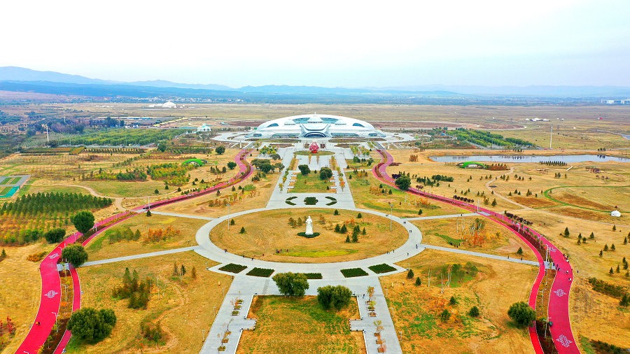 10月7日,空中俯瞰內(nèi)蒙古少數(shù)民族群眾文化體育運動中心。