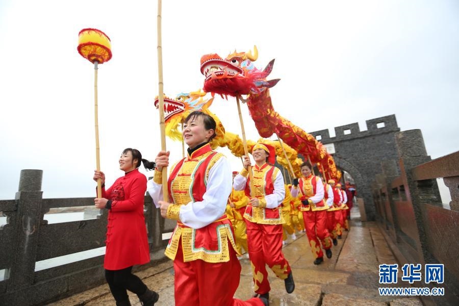 2月25日,江蘇省淮安市洪澤區(qū)岔河鎮(zhèn)舉辦“老街民俗鬧元宵”活動,民間藝人表演舞龍。新華社發(fā)(陳凱 攝) -